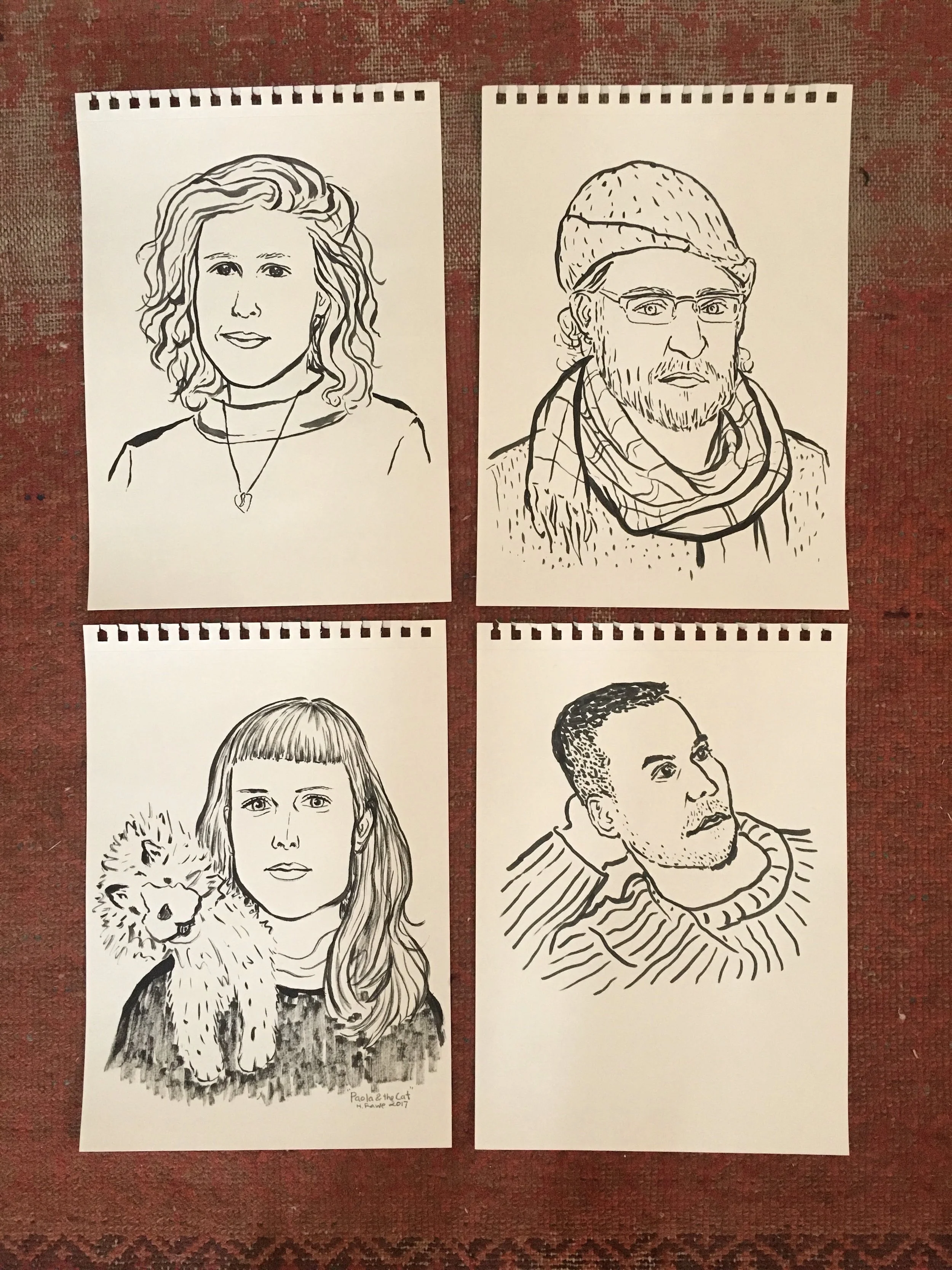 I love to do quick ink and iPad portraits at events. If you would like to hire me to do portraits at a party, or to commission a portrait, please contact me directly. You can also reach out to Drawn Together, a friend's company that I often work with, for more information.